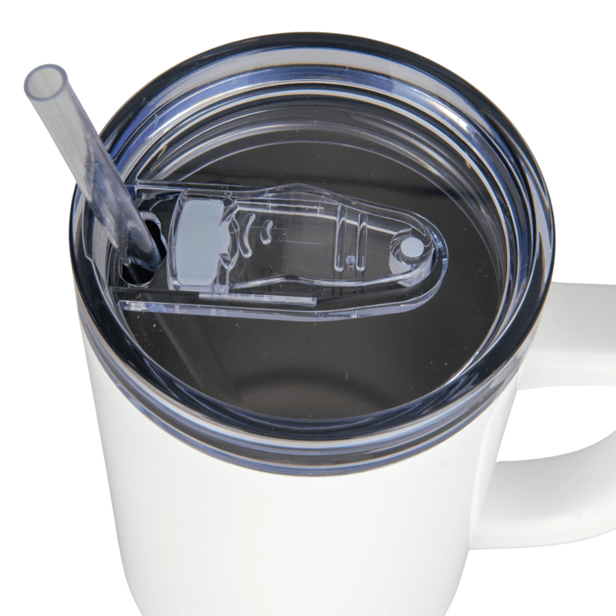 Kubek stalowy Trek 1200 ml z uchwytem i słomką – biały