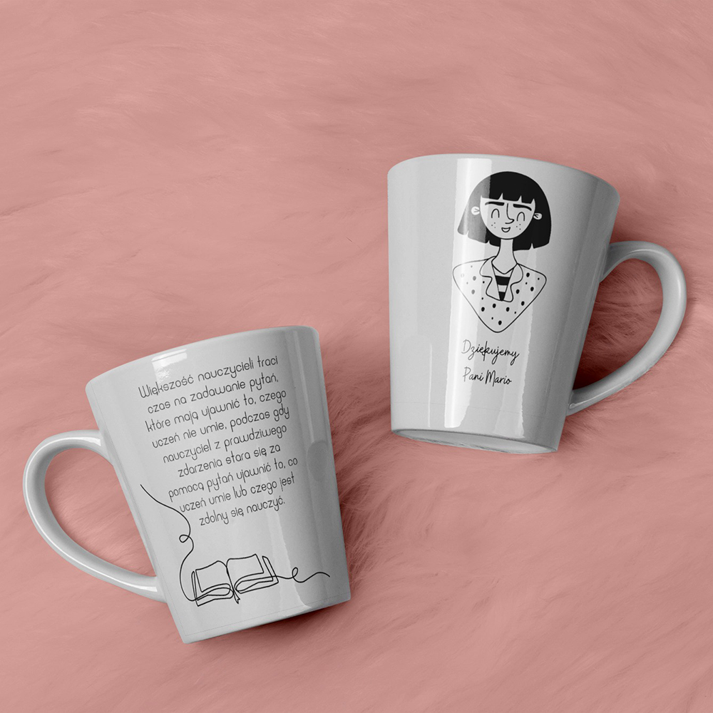 Personalizowany – wyjątkowy kubek – oryginalny design z imieniem nauczyciela wyróżnia prezent spośród innych.