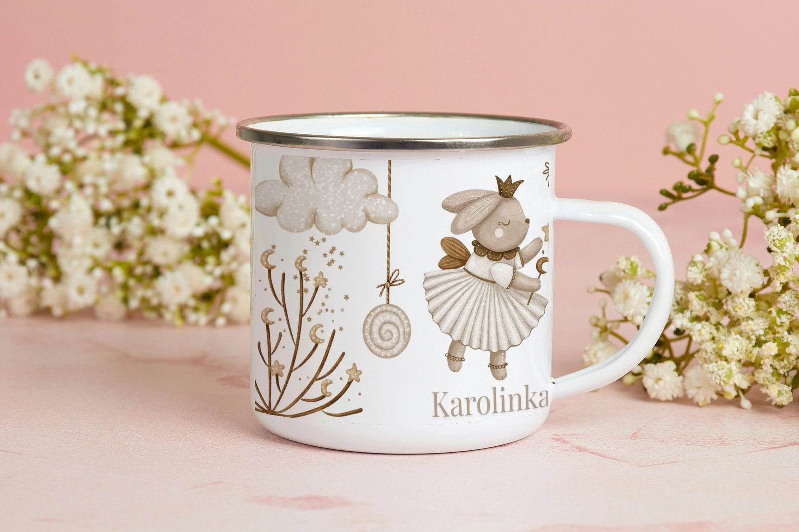 Kubek „Mała Karolinka” umożliwia dodanie imienia dziecka, dzięki czemu staje się wyjątkowym, spersonalizowanym prezentem. Doskonały do codziennego użytku w domu, przedszkolu i na wyjazdach.